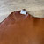Cuoio grana naturale finitura semi lucida. Particolare colorazione marrone nero su fondo arancione.